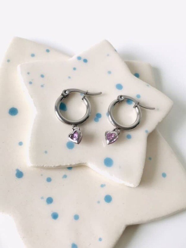 ARO COLGANTE CORAZÓN MINI PIEDRA ROSA
