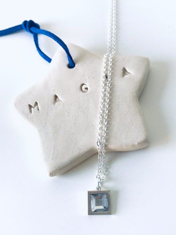 CADENA CON DIJE PIEDRA CUADRADA BLANCA