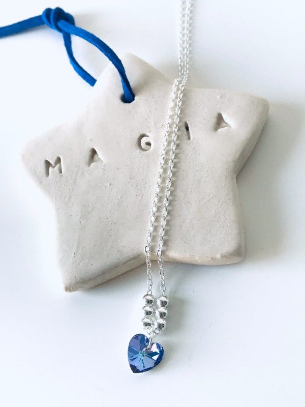 CADENA CON BOLITAS PLATEADAS MAS CORAZON TORNASOLADO MULTICOLOR