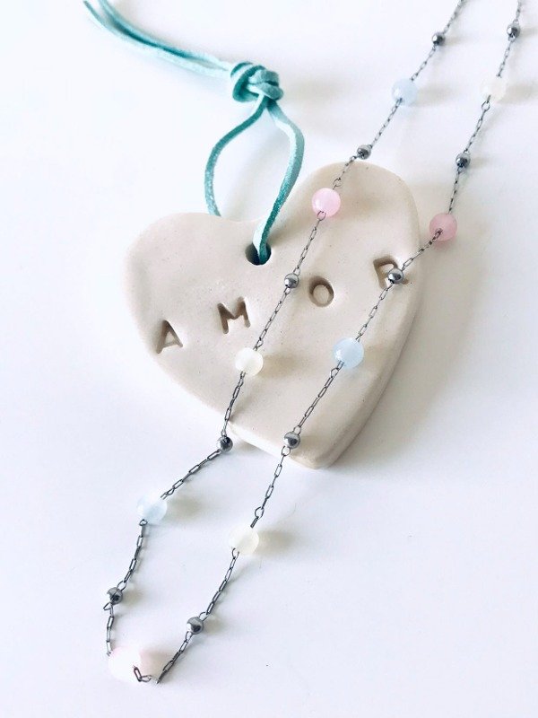 GARGANTILLA CON DETALLES DE BOLITAS PLATEADAS Y BOLITAS EN TONOS PASTEL
