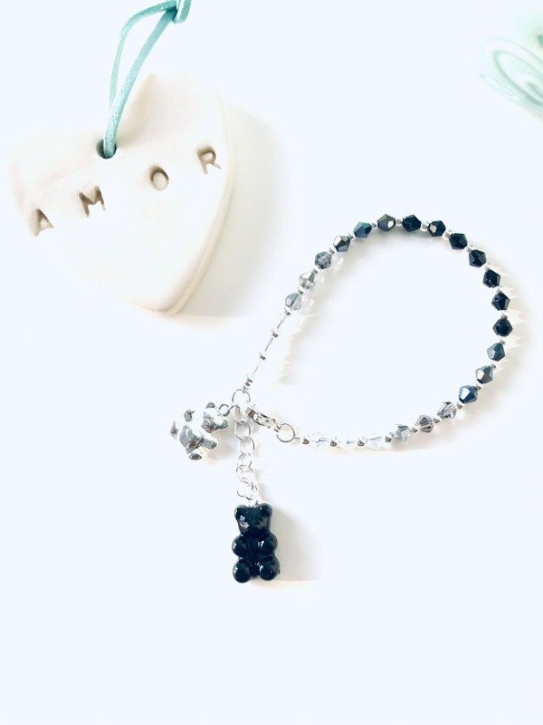 PULSERA CON PIEDRAS EN DEGRADE MAS OSITO NEGRO Y PLATEADO