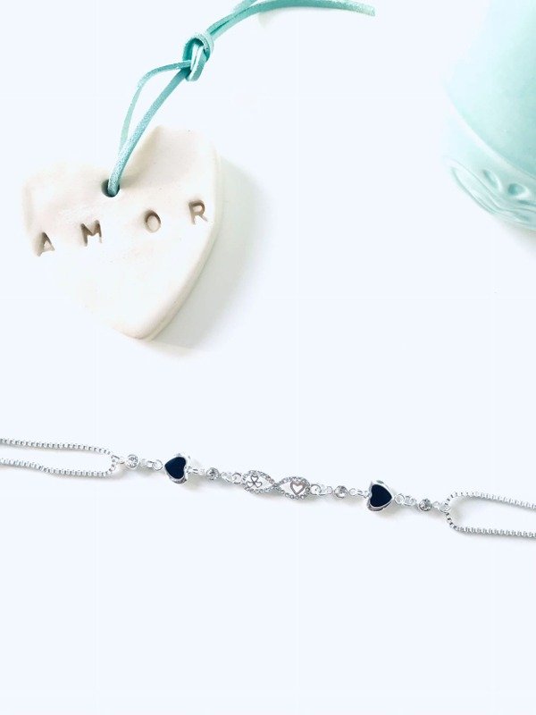 PULSERA CON CORAZONES NEGROS, PIEDRAS E INFINITO CON STRASS