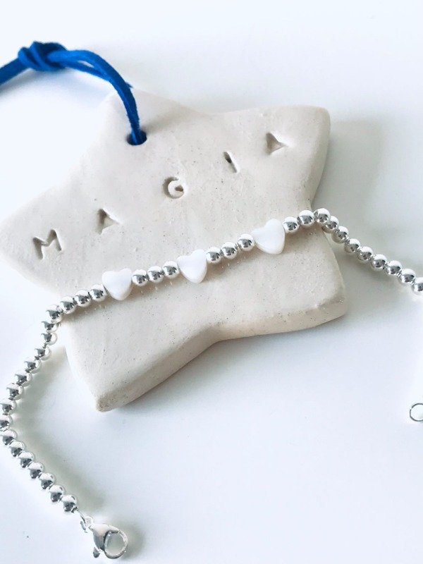 PULSERA BOLITAS MAS CORAZONES DE NACAR