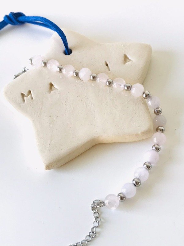 PULSERA BOLITAS ROSA CLARO Y PLATEADAS
